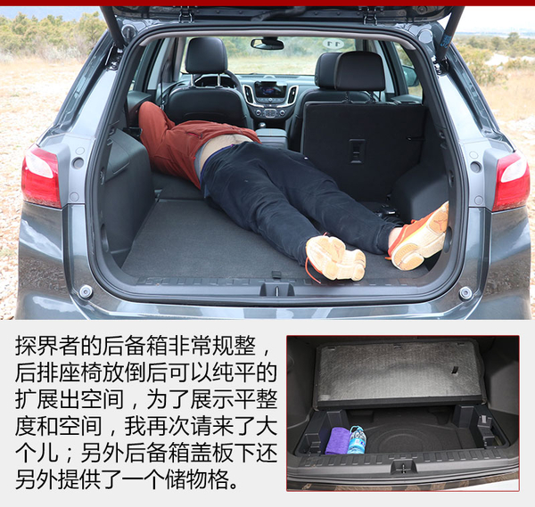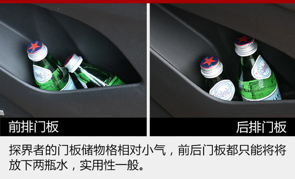 探界者作为一台中型SUV在储物空间的表现其实有些平庸,不算多的储物格除了扶手箱以外基本没有亮点,而且门板的储物格也比较不实用;后备箱的空间倒是值得肯定,无论是座椅放倒后的平整和可扩展性,还是盖板下方的小储物格,都很靠谱。