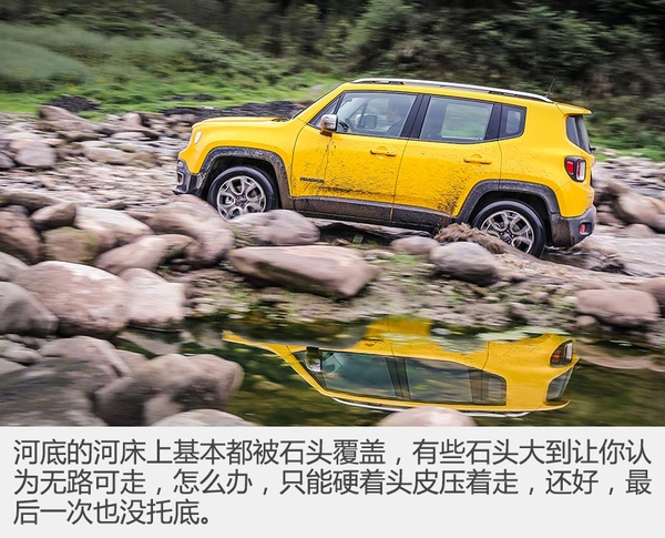 我从来也没想过渡河是一件多么有乐趣的事儿,然而其实也挺危险的。水看着不是很深,但一下到水里就感觉坐进了船,漂在水上,湍急的水流冲的车身不断轻微的摇摆,水中行车的阻力也很大,河底和河床上还遍布着大石头,开着车就不断的左左右右上上下下的颠簸着,不过只要稳住油门,其实很轻松。后悔提前拆了顶棚,看着车身两侧溅起的水花,很爽,也很湿。