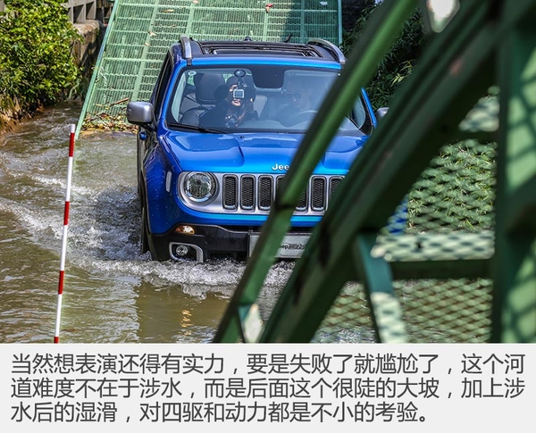 得瑟的原因在于有实力,让同级别任何一个车型来完成,恐怕都得失败,所以这更像是一场表演;坐在车里更加深有感触,河道涉水不算难度,只是有些埋设的交叉轴和炮弹坑,只要速度不快就完全没难度;然而那个又高又陡的铁拱桥,冲上铁桥的一瞬间就是脸朝天屁股朝地,挺吓人的,下桥的时候就反过来脸朝地屁股朝天,也挺难受的。有惊无险无难度的自由侠在这里秀出了自己真正的实力,同级别最强四驱和最强非铺装通过性实至名归。