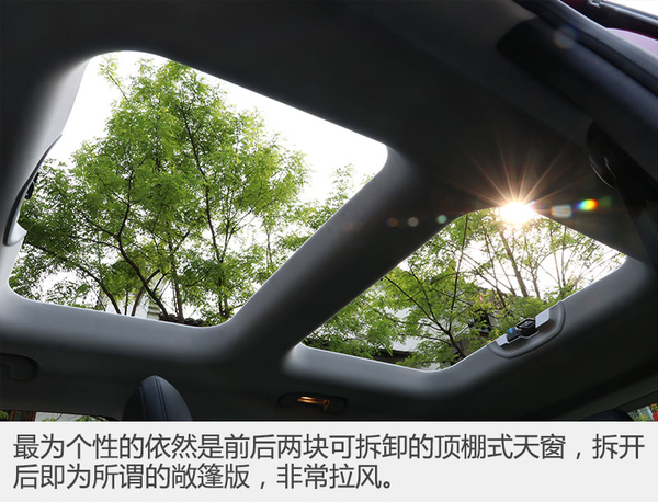 就跟一个长的很有气质又与众不同的姑娘一样,自由侠怎么看都看不腻,真的是太充满设计感,外观内饰的每一处细节都仿佛充满了让你心动不已的彩蛋,等着你去欣赏和挖掘它隐藏在个性与时尚之下更深一层所体现的情怀;打着情怀的名号却不失实用性,在空间上作为一台小型SUV并没有产生任何劣势,乘坐空间的表现很优秀,而可拆卸顶棚又为车内带来太好的通透性。
