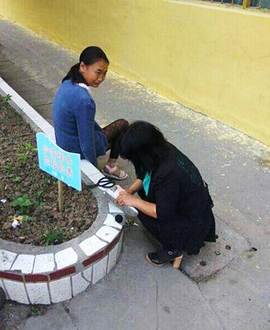 近两天,微信朋友圈流传一组照片:一位身着黑衣的女子蹲在花坛边,低头缝补一只粉色凉鞋(如图)。旁边坐着一个小女孩,背过身去拭泪。图片配文:补鞋的老师像妈妈。这感人一幕发生在5月21日项城市昌福学校,该校学生大部分是留守儿童,补鞋的女子是该校的郭雪梅老师。这件事经河南日报客户端和河南日报官方微博发布后,在网上引起强烈反响,很多网友表示,这组图片戳中了心中最柔软的那一块。