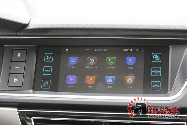 7英寸多媒体显示屏采用触控式操作,实际测试灵敏度较高,集成导航、蓝牙等功能。后视镜加热按键被设置在了下方控制区。