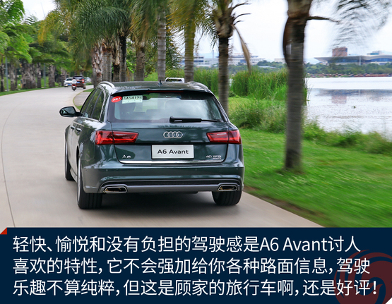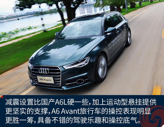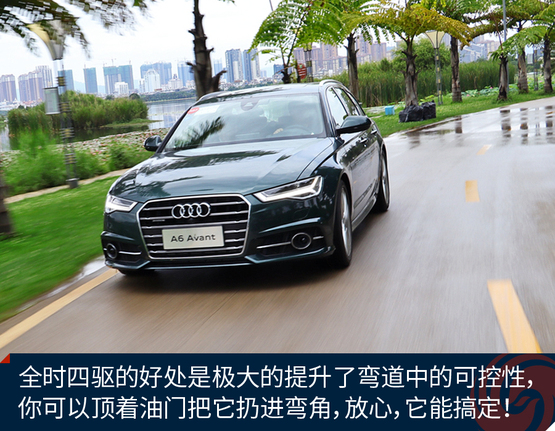 作为原装进口车,奥迪A6 Avant的底盘悬挂设定不像国产奥迪A6L那种偏向关照后排的VIP,再加上标配运动型悬挂缩减了悬挂行程,A6 Avant旅行车开起来明显比A6L来的犀利和动感,我并不是说它像RS 6 Avant那样有种让人上瘾而无法自拔的“毒力”,但作为一台有着浓郁个人主义色彩又需要兼顾全家使用的车型,奥迪A6 Avant是那种该稳就稳,要快也能快的理想设定。