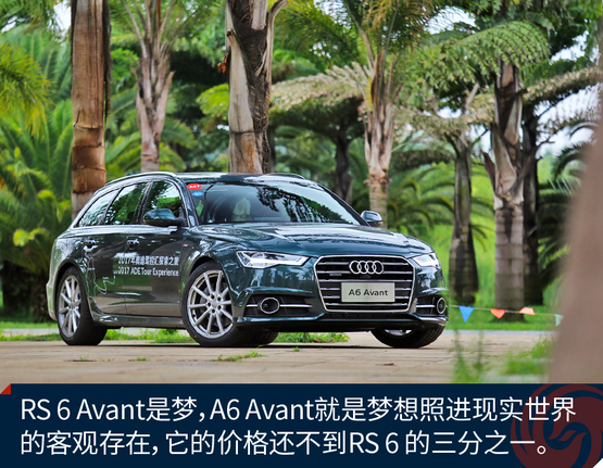 RS 6 Avant是梦,A6 Avant就是梦想照进现实世界的客观存在:双涡轮增压的4.0T V8发动机被砍去一半,去掉了RS高性能车系的专属套件,仅此而已。那价格呢?A6 Avant标价还不到RS 6 Avant的三分之一,而它灵活宽绰的空间、独一无二的个性和出众的驾驶乘坐感受却是你一直都梦寐以求的。