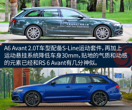 进口到国内销售的奥迪A6 Avant均配备运动型悬挂系统,相比海外市场标准型A6 Avant的车身更低更贴地:1.8T车型底盘降低20mm,配备S-Line运动套件的2.0T运动型甚至降低了30mm,再加上低扁平比轮胎和19英寸轮圈,“有范儿”的气息扑面而来。你至于要再为它添置一套宽体空气动力学套件和更粗壮的排气管,它便和你梦中的神车RS 6 Avant有99分神似了。