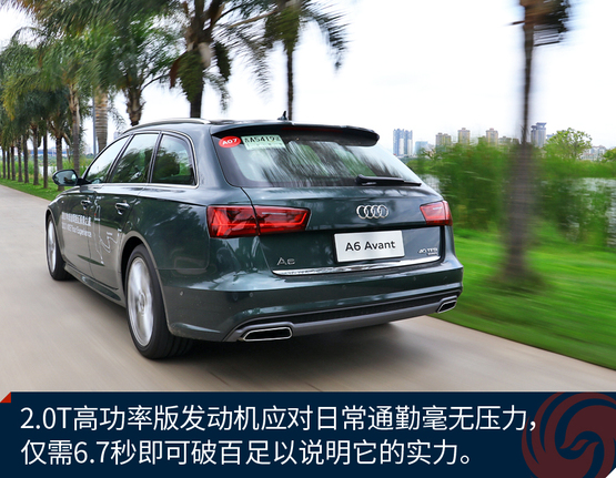 这套动力总成在绝大多数情况下都设定风格都是注重节油,轻踩油门时动力输出提升比较迟缓,但再深踩油门挑逗涡轮全力以赴就有点“过火”了。总的来说A6 Avant的动力释放风格是先礼后兵,在市区行驶控制动力的平和输出需要一定的经验和技巧,但还是要对双离合变速器给与肯定:它的换挡既快又稳,低速时的闯动也控制的难以感知。如果开车的风格比较活泼激进,选择运动模式会提供让你满意的动力响应。