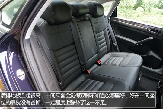 全新帕萨特的内部乘坐空间还是挺大的,美中不足的是后排地板的凸起比较高,好在后排中间座位配有头枕,而且座椅整体设计的比较宽大,乘坐舒适性还是有保证的。