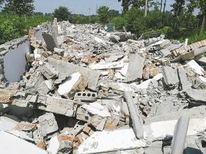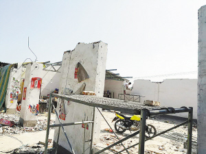 7月11日上午10时许,周口晚报记者在李埠口乡孙楼村东头看到,光明超市的业主孙全友正组织人员自行拆除4间砖混结构违建(图一)。