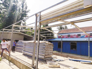 在李埠口乡段庄村村北头,周口晚报记者看到该村村民段长伟正在紧张地拆除自家的6间钢结构房屋(图二)。