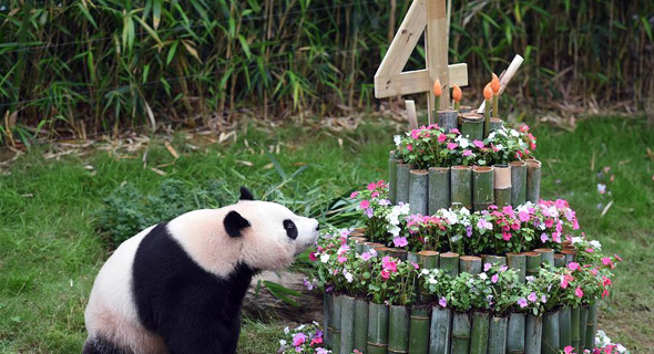 旅韩中国大熊猫“爱宝”和“乐宝”将分别在本月13日和28日迎来自己的4岁和5岁生日,爱宝乐园12日专门为它们举办了庆生会。