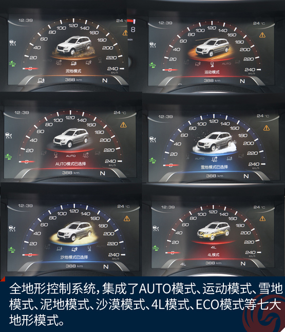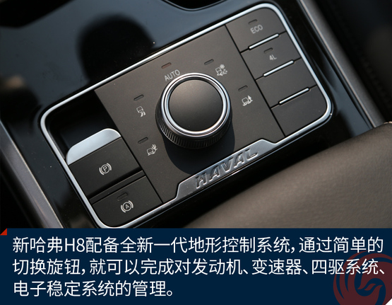四驱系统也是新哈弗H8的亮点,搭载全新一代全地形控制系统,可使驾驶者简单的旋转旋钮,切换驾驶模式,这套系统集成了7大不同的驾驶模式。让驾驶者可以轻松面对各种复杂的路况,这套系统的目的就是把复杂的操作简单化。