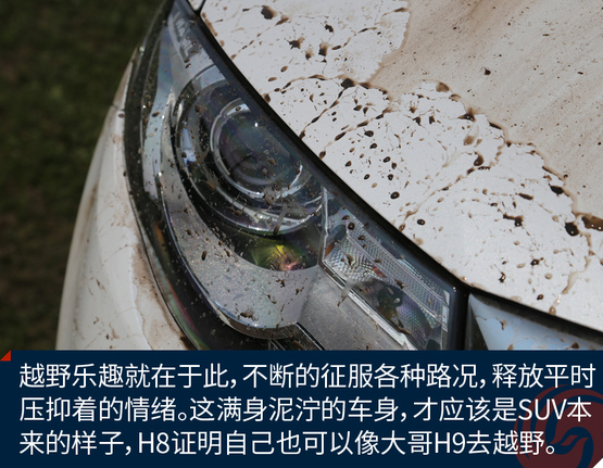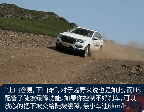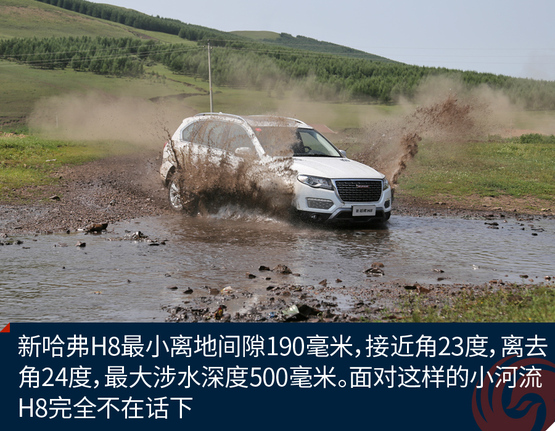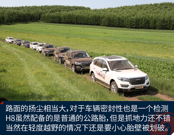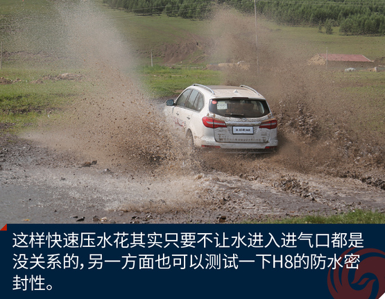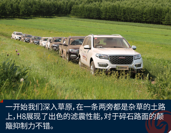 经过一段轻度的草原穿越,这段路程主要是体验H8的通过性和滤震性能,好戏才刚刚开始,通过这段路程我已经感受出了H8偏向城市型SUV的调教,底盘很稳健,但是悬挂比较硬朗。