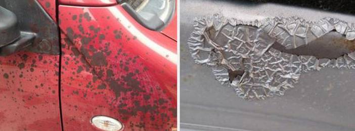 酸性的雨水落到车上,雨水会被蒸发,但酸性的物质可能还会留在你的车身表面,时间一长便会腐蚀你的车漆。