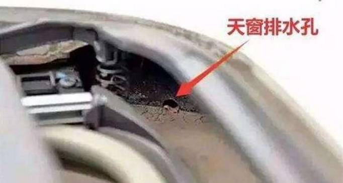 如果这些排水孔被堵塞,就会导致积水沿着车顶流向车内的天窗电机,这样的话就很容易造成天窗电路短路甚至烧毁。