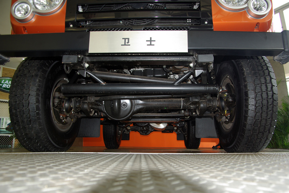 路虎卫士赖以生存的是其硬派的机械本性,其非承载式的大梁及前后硬轴,以及带低速档的分动箱,都是卫士野外生存适应能力的保证。