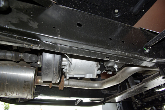卫士的大梁及中央差速器特写,图中可以看到卫士的大梁非常的厚实粗壮。