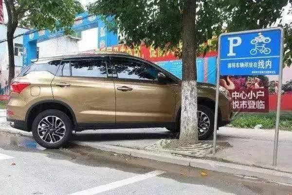 除了常见的半侧车轮骑马路牙子外,上图中这种前后车轮骑马路牙子的停车方式也不可取。