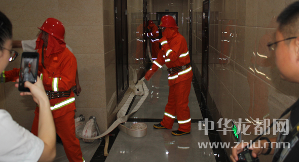 9月20日上午,周口报业昌建地产的近百名业主和经营场所工作人员在集中学习消防知识后,又一起参加了消防演练。图为消防演练现场。晚报记者 朱东一