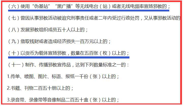 该司法解释共16条,主要就邪教组织的界定;组织利用邪教组织破坏法律实施罪和组织、利用邪教组织致人重伤、死亡罪的定罪量刑标准;邪教组织犯罪所涉及的宽严相济、罪数处断、共同犯罪等实体问题和邪教宣传品的认定程序等问题做了规定。对近年来出现的新型涉邪教犯罪行为,司法解释作出了明确的量刑规定。如使用“伪基站”“黑广播”等无线电台(站)或者无线电频率宣扬邪教,以货币为载体宣扬邪教,利用通讯信息网络宣扬邪教等,将“依照依照刑法第三百条第一款的规定,处三年以上七年以下有期徒刑,并处罚金”。