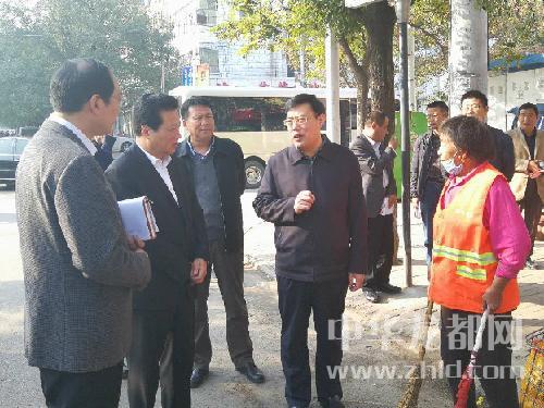 马卫东、熊和平等在健康路实地察看城区环境卫生综合整治情况。 记者 岳建辉 摄