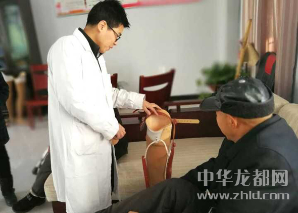 12月8日,河南省残联相关负责人来到鹿邑康复辅具服务中心,为24名肢残贫困残疾人免费安装假肢,让这些贫困残疾人重新站了起来。图为假肢安装现场。