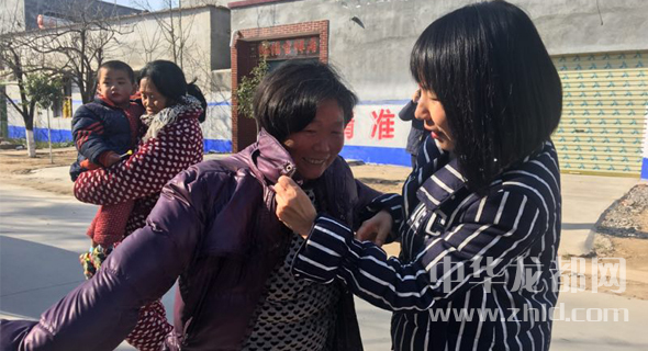 12月8日上午,团市委工作人员为西华县东王营乡李方口村的贫困村民和留守儿童送来了棉衣、图书、桌椅等物品,在寒冷的冬季为李方口村送去了温暖。图为村民试穿棉衣。 晚报记者 王凯 摄