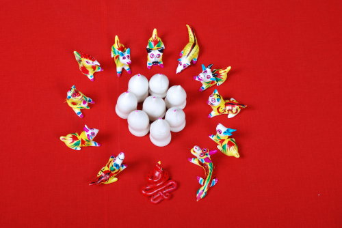 “在彩绘着色上,顾家馍使用分层着色法。以黄色衬底为主色,红色点睛,蓝、黑、青等色勾架描脉络花纹。同时,注重彩绘与勾线相结合,以色传神,以神着色,从而形成了色彩艳丽而不俗,美而不妖不媚的境地,充分显示出了喜庆、祥和的韵致。”顾家馍第十六代传人顾体成介绍说。