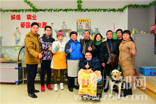 孙合理(左一)与领羊肉的残疾朋友合影。