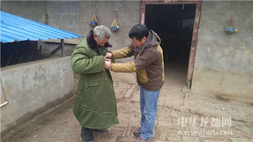 “前一段时间你给我们送的新被子还没舍得盖呢,这刚下大雪,又给我们送来了棉大衣。外边太冷,快到屋里坐,快到屋里坐。”郸城县发改委主任孟宪红把棉大衣挨家送到双楼乡张庙村贫困老人家中,张老汉感激不已,连忙让座。