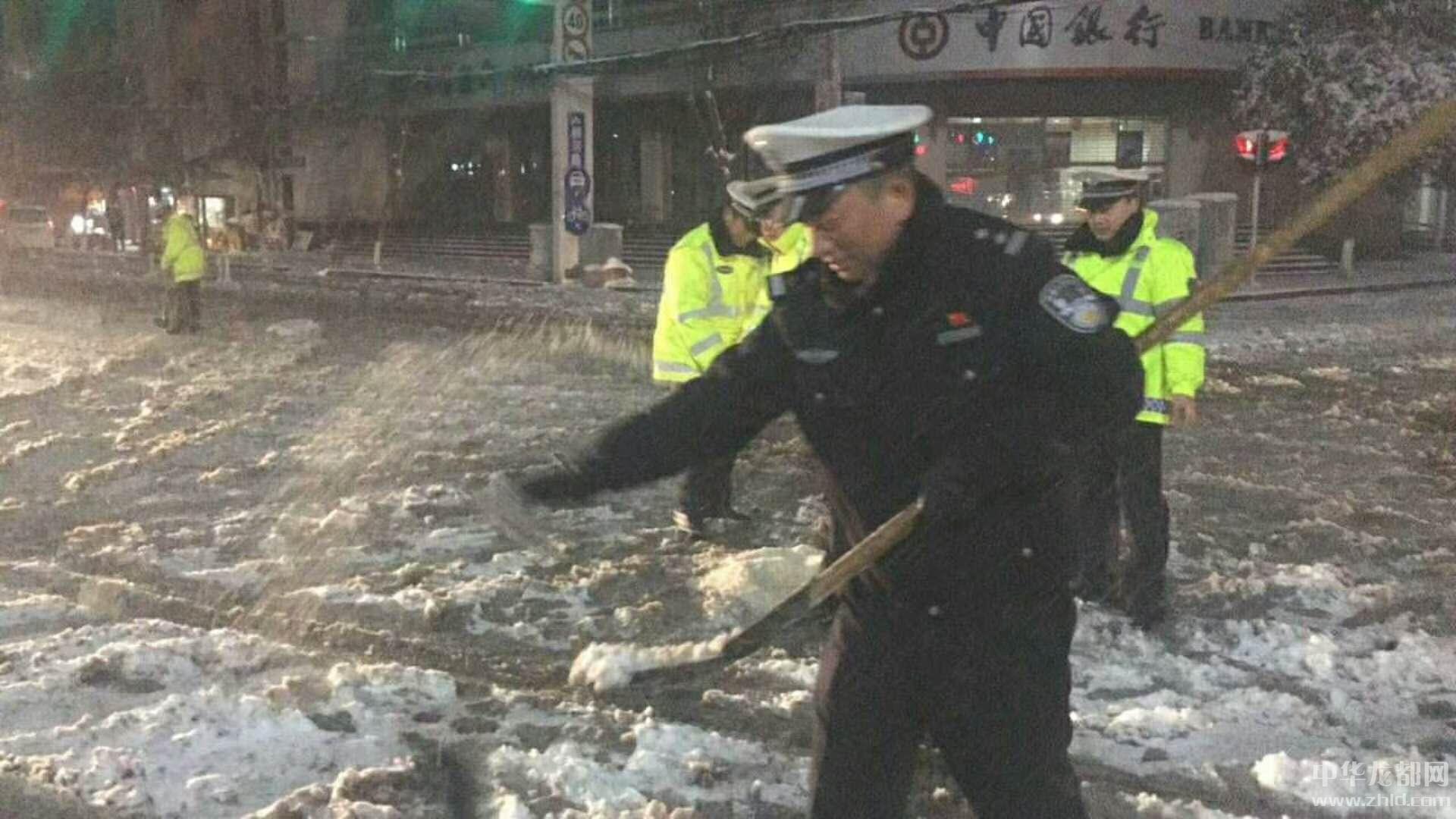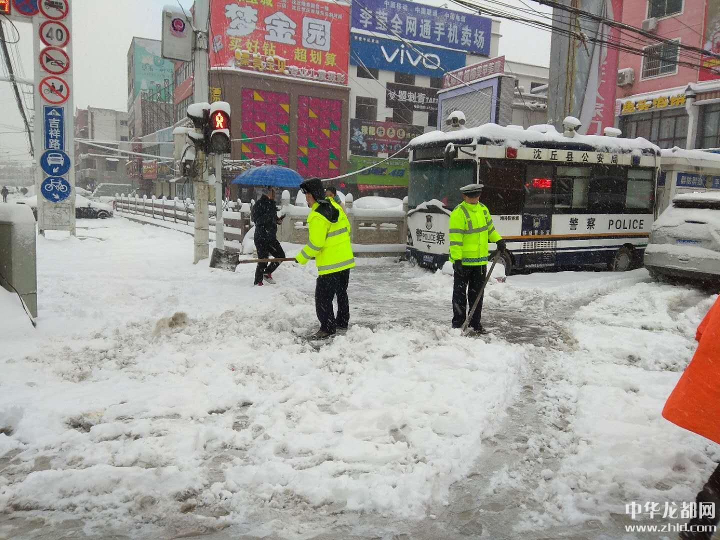 两天,百多人、十吨盐,无一起交通事故,交警们在寒冬中坚守着,雪后的沈丘更显暖意浓浓。