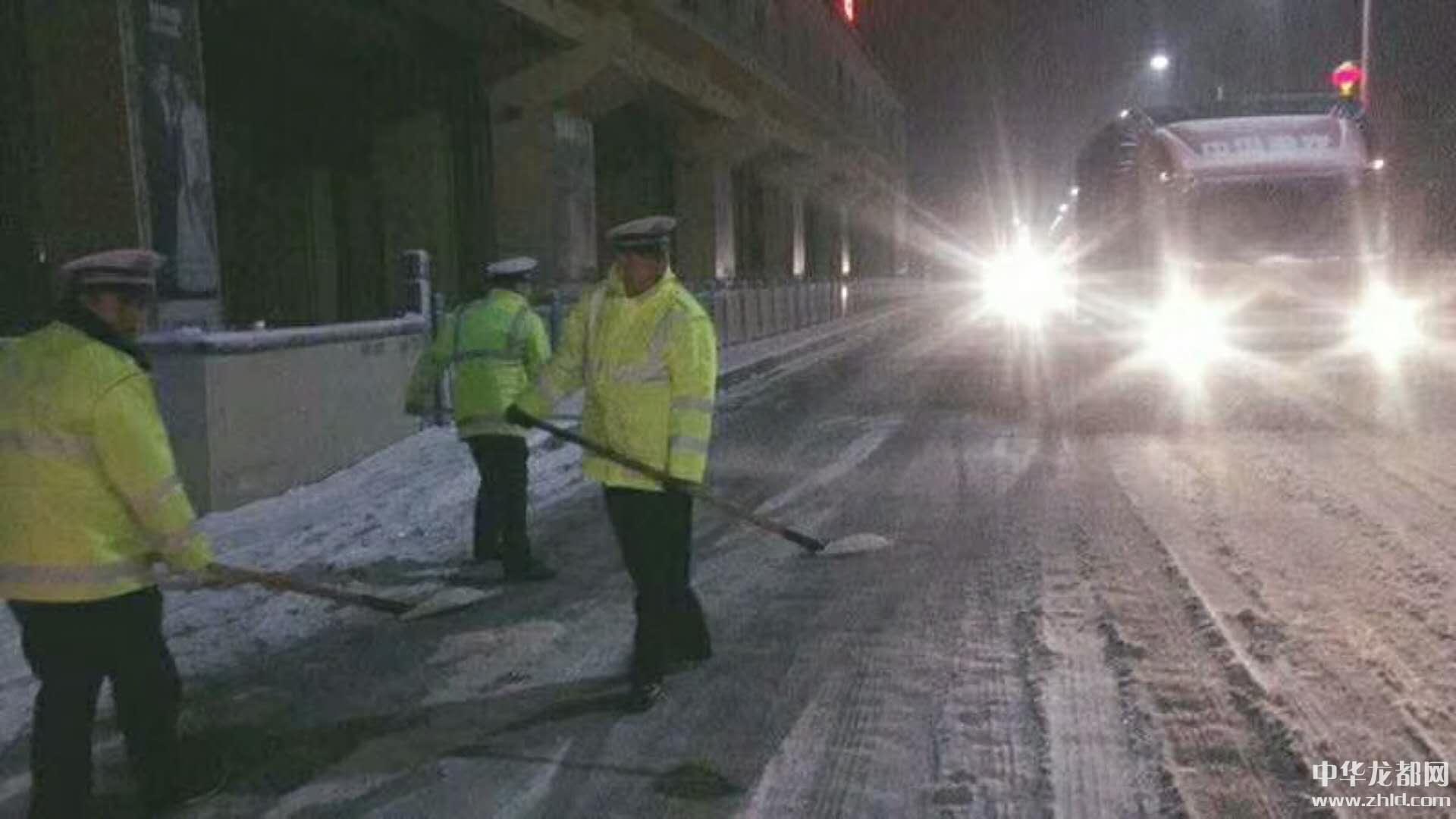 中华龙都网讯(周口报业全媒体记者 韦伟 通讯员 王佳佳 )“加派警力到各个桥梁涵洞,持续清扫路面,防止结冰!”1月4日下午六点,沈丘县城仍是白雪飘飞,天还没黑,一道加急令,让忙碌了一天一夜的交警们打起了十二分的精神,继续全员上路,不停不歇地进行扫雪及撒盐除冰工作。