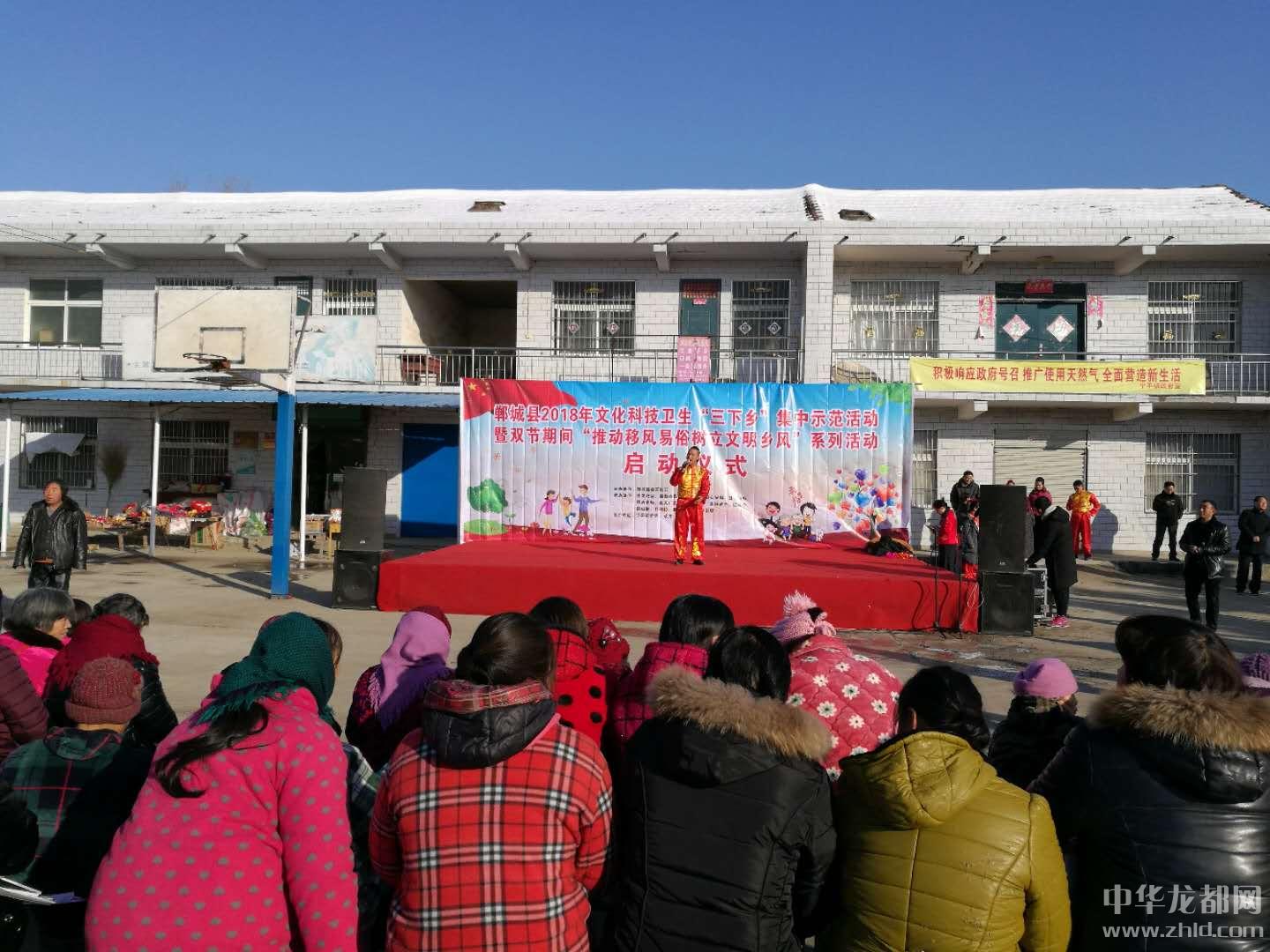 中华龙都网讯(周口报业全媒体记者 徐松)1月10日,冬阳暖暖,郸城县宁平镇竹园村文化广场热闹非凡。由郸城县委宣传部、县文明办主办,县发改委、教体局、科技局、文广新局、卫计委等单位承办,郸城县2018年文化科技卫生“三下乡”集中示范活动暨双节期间“推动移风易俗,树立文明乡风”系列活动启动仪式在这里隆重举行。