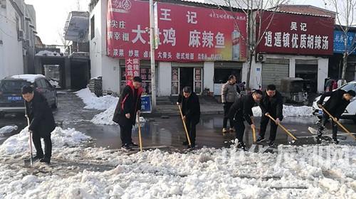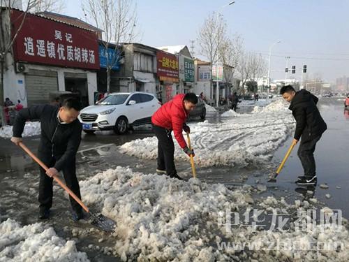 为有效缓解雨雪天气行人车辆出行难题,该行组织员工赴五一路分包执勤点清扫积雪,方便市民出行。经过2个多小时的清除,路况明显好转,方便了车辆及市民通行。