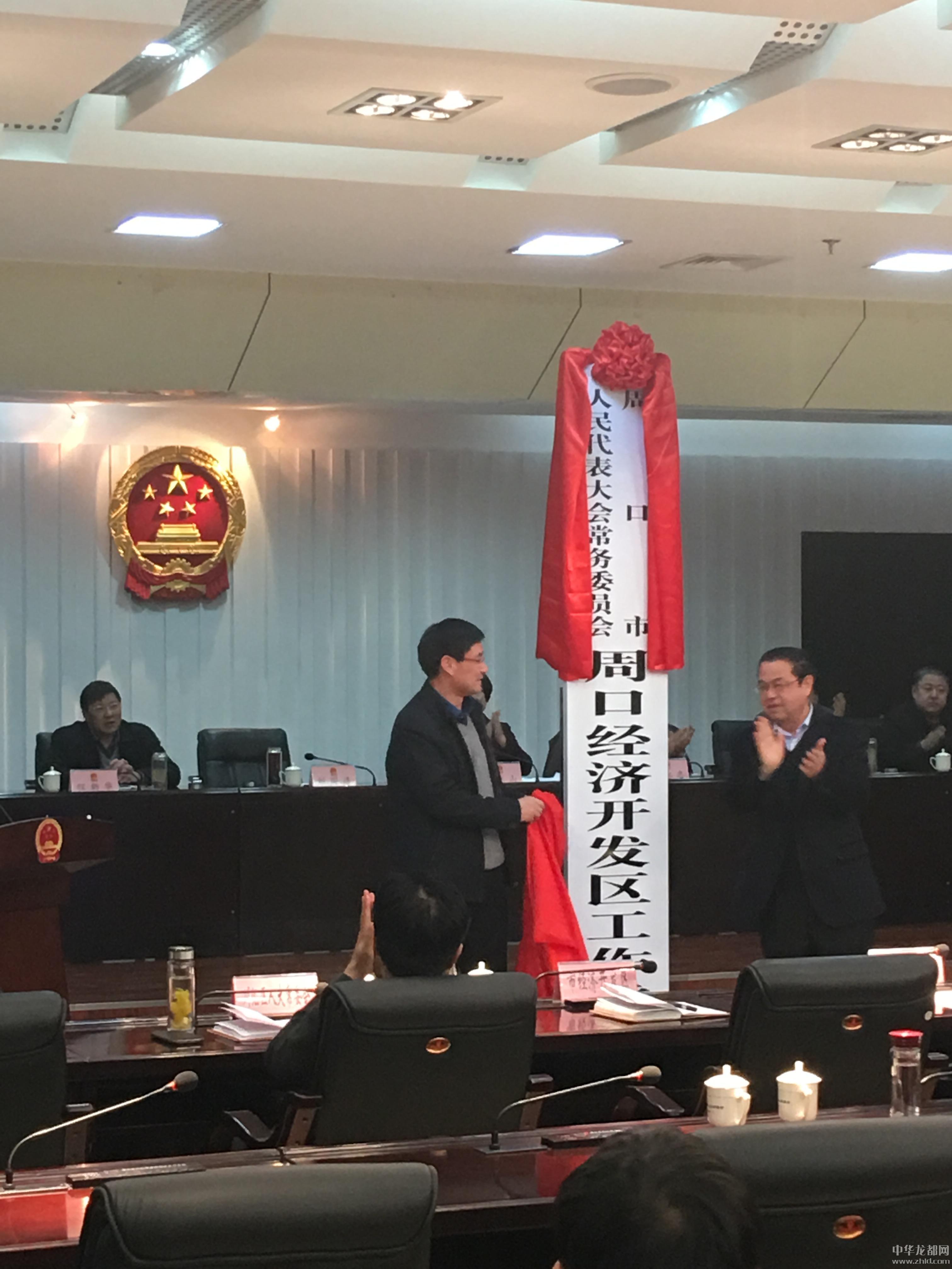 中华龙都网讯(周口报业全媒体记者 刘昂)1月19日下午,周口市人大常委会城乡一体化示范区工作委员会、周口市人大常委会经济开发区工作委员会、周口市人大常委会港口物流产业集聚区工作委员会举行揭牌仪式。市人大常委会副主任、党组书记刘国连,副主任、党组副书记解冰山,副主任程新华、杨永志、建志、王伟,常委会党组成员、市总工会主席游保峰及常委会秘书长朱艳杰等出席揭牌仪式。解冰山主持仪式。