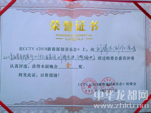 中华龙都网讯(周口报业全媒体记者马治卫)1月21日,CCTV第六届新春原创音乐盛典暨颁奖盛典在北京举行,太康籍词作家任治森原创歌曲《美丽普弄我家乡》荣获2018新春原创歌曲金奖。