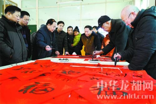 春节临近,书法爱好者走进乡村,开展“迎新春 送春联”活动,给父老乡亲送上新春祝福。王晓 摄