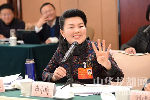 申小梅代表就如何发扬光大传统文化艺术提出建议。记者王映摄