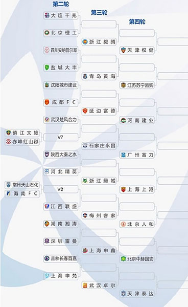 第四轮开始16支中超球队加入角逐,加上从第三轮晋级的16支球队,共32支球队参赛,中超球队自动落位相应客场签位,其中广州恒大、上海申花、上海上港和天津权健4支亚冠球队将分别落位在A、B、C、D区,这4支球队在半决赛之前不会相遇。