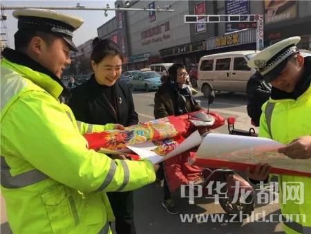 中华龙都网讯(周口报业全媒体本报记者 韦伟 通讯员王向灵 郭力铭)“这位大姐,刚才红绿灯时您能按时等候,这是对您的奖励。”2月8日上午,记者在沈丘县街头看到,面对遵守法规、文明出行的市民王女士,交警刘涛给她送上一套红红的新春对联。