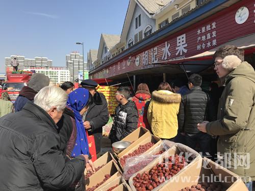 从华耀城出来,记者来到太昊路上的周口黄淮农产品大市场,前来置办年货的市民络绎不绝(图三、图四)。市场工作人员介绍:“9点以前,大多是来买蔬菜、海鲜的。现在11点了,水果批发区这会儿正热闹。”
