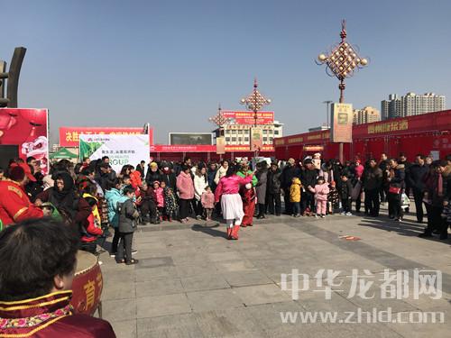 2月6日上午,市区五一文化广场张灯结彩,“驿见钟情”相亲会暨2018周口首届精品年货节让市民一站式置办年货。年货节现场的传统节目引得市民驻足观看(图五)。