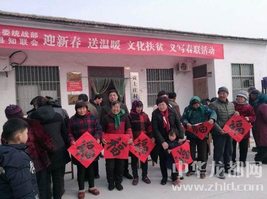 中华龙都网讯(周口报业全媒体记者谢永静通讯员何俊山)2月9日上午,扶沟县汴岗镇贡士庄行政村村委大院内,人头攒动,热闹非凡。县委统战部、县知联会联络县书协7位知名书法家到县委统战部帮扶的贫困村——汴岗镇贡士庄行政村举行“迎新春•送温暖•文化扶贫•义写春联”活动。