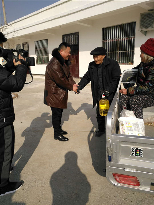中华龙都网讯(周口报业全媒体记者张劲松文/图)2月13日,农历腊月二十八,东莞市河南商会会长、东莞市昶宏集团董事长、周口市东新区许湾乡叶庄行政村村主任熊茂礼千里回乡,走访慰问村里49家贫困户,为他们送去了米、面、油等慰问品和慰问金,并送上了新年的祝福。