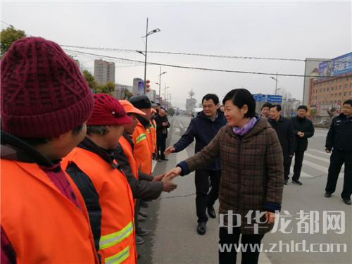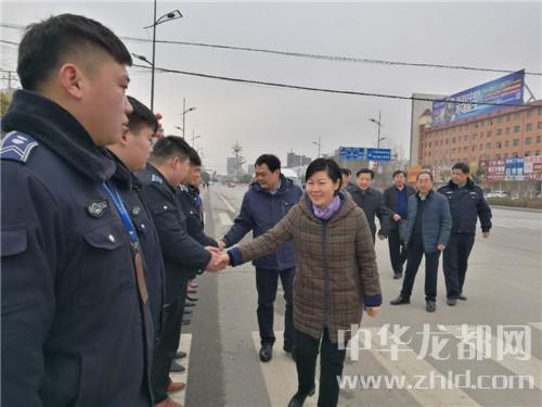 在郸城县城新华路与迎宾大道路口,罗文阁、李全林和一线值勤的环卫工人、城管队员一一握手,深切关心环卫工人和城管队员的冷暖。“看手多凉,要穿厚点儿呀。大年三十了,你们放弃和家人团圆吃饺子的机会,在为我们的县城保洁,我们城市的清洁有赖于你们。你们辛苦了,给你们拜个年,祝你们身体健康。”罗文阁向环卫工人递上慰问金时,朴实的话语、殷殷的关怀把党的温暖涌向环卫工人的心窝儿。“不辛苦,领导来看俺,俺里比吃饺子暖和。”环卫工人边鼓掌边道出了内心的激动。