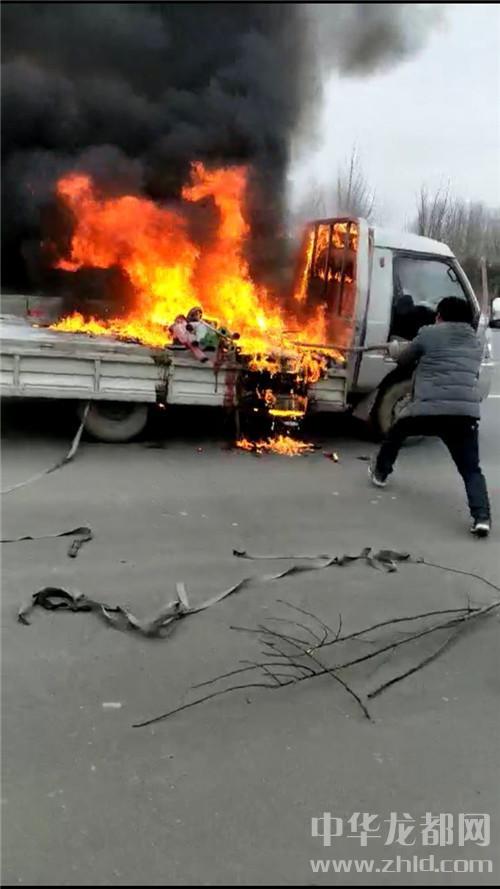 中华龙都网讯(周口报业全媒体记者马治卫通讯员王立平)2月27日中午13:00时,太康县百米大道一辆满载家具的车辆在行进途中突然着火,浓烟夹杂火苗很快蔓延整个路面,车上的家具随火势迅速燃烧,路人不禁惊呼:“失火了!失火了!”