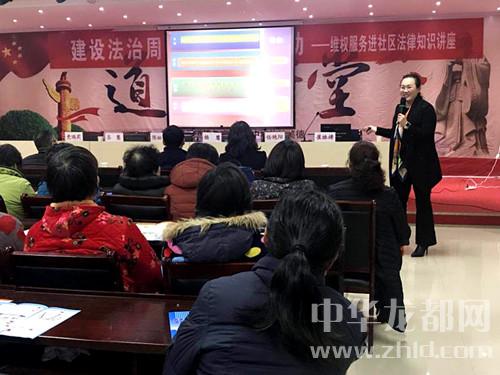 中华龙都网讯 (记者姬慧洋 文/图)“哪些财产属于夫妻共同财产?”“如果遇到陌生人让你领路怎么办?”3月1日上午,在川汇区荷花办事处2楼会议室里一场关于维护妇女儿童权益的普法讲座开讲,来自荷花办事处的120余名妇女群众聆听了这次讲座。据介绍,这期普法讲堂拉开了我市“三八维权周”活动的序幕。