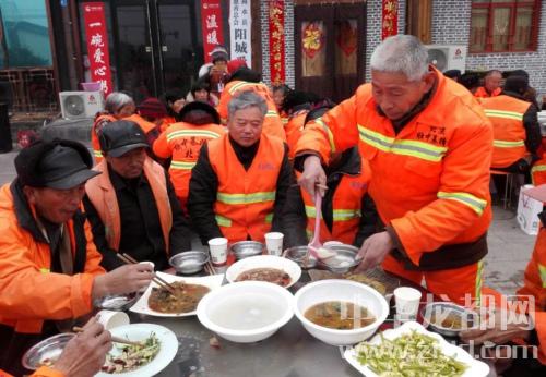 中华龙都网讯(记者 付永奇 通讯员李文涛 )3日2日是农历正月十五,商水县百名环卫工人中午大聚餐,吃上热气腾腾的菜肴和甜味可口的元宵。