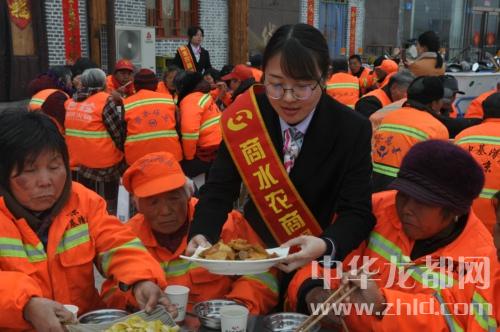 春节以来,城区人口增加,环卫工人工作量大增,许多工人吃不上应时热饭。为感谢环卫工人的辛苦工作,爱心企业商水农商行精心为当日值班的环卫工作提供了免费午餐,并为每位环卫工作提供了一份精美礼品。“上元宵了!”菜肴上够十个,农商行工作人员端上来大盆元宵。“累了一上午,能在这和大家一道过元宵佳节,真是太感谢农商行的领导!”65岁的环卫工人赵明亮吃着甜滋滋的元宵高兴地说。