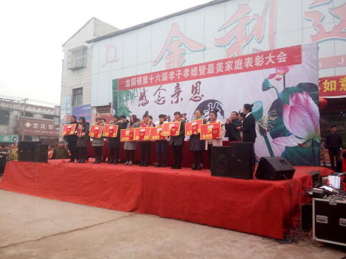 中华龙都网讯(周口报业全媒体记者 谢永静)3月3日上午,扶沟县韭园镇党委、政府大院旁的广场上人潮涌地。从十里八村赶来的人们汇集于此,在欣赏完精彩纷呈的舞狮子、划旱船和锣鼓表演后,共同参加该镇第十六届“孝子孝媳”暨“最美家庭”表彰大会,接受一次孝道教育和精神洗礼。副县长胡东辉、县委宣传部副部长张根、县文明办主任高景卫、韭园镇党委书记谢清泉、镇长王朋云等参加大会。