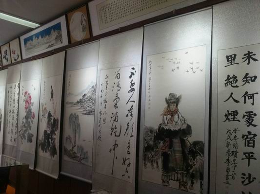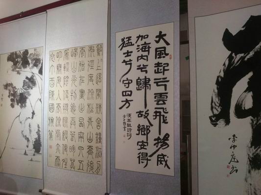 本次书画展由中共沈丘县委宣传部、县文联主办,县书协、县美协承办,展出我县书画家创作的书画精品一百多幅。书法作品五体俱全,其中范晓公、高望、李少华等人的行草书;陈国旗的小篆;李中魁、刘景的隶书;赵东明、李勇的楷书各具风采,引人注目。国画作品花鸟、人物、山水皆有,青年画家吴帆的《钟馗图》孔武有力、王志全的《翠竹》》笔墨精到、女画家海纳的《山水》气势磅礴,老画家王蒞泉的《猫蝶嬉戏》功力深厚。